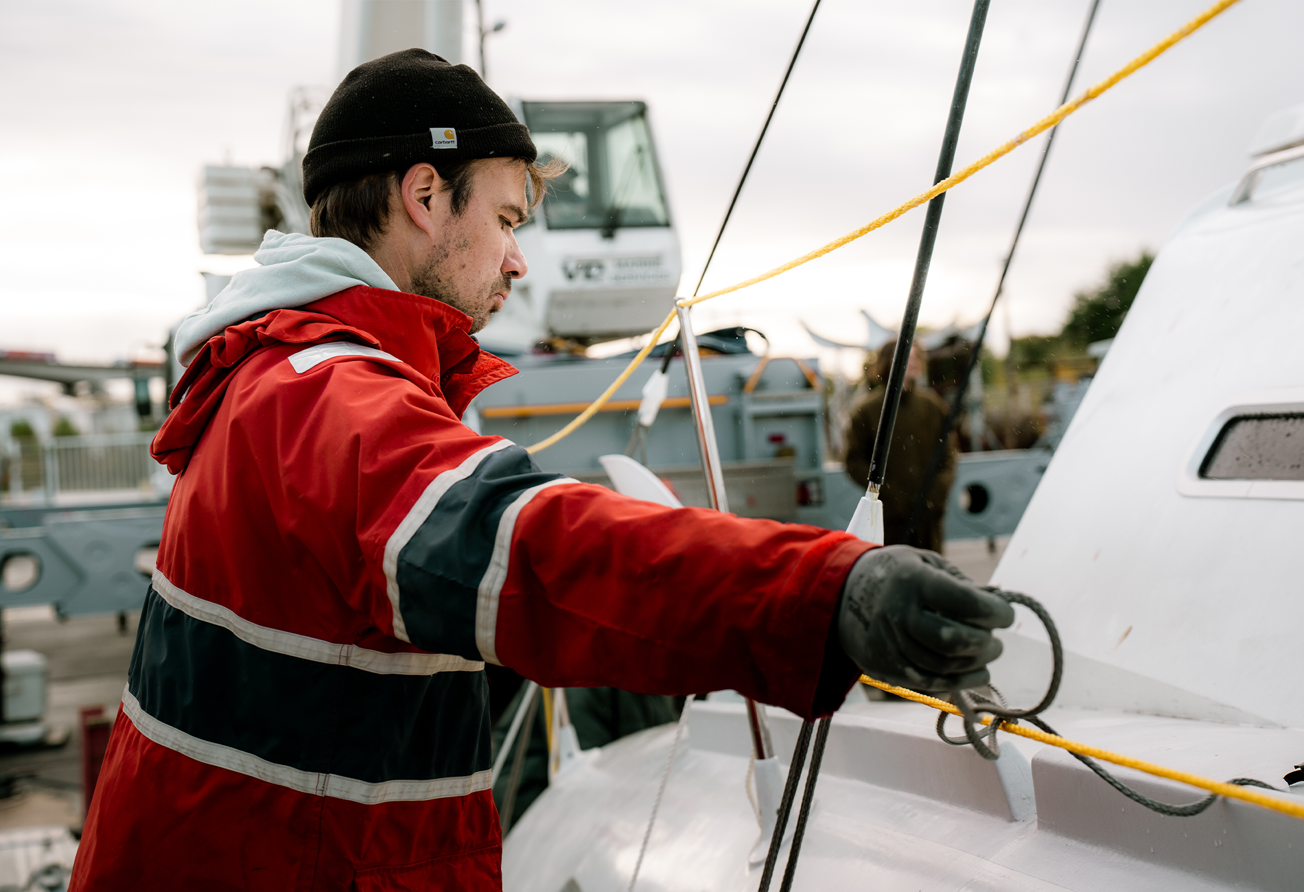 Sunrise, mist over the harbour, and a moment suspended in time: this morning, Épic raised its mast in Caen.