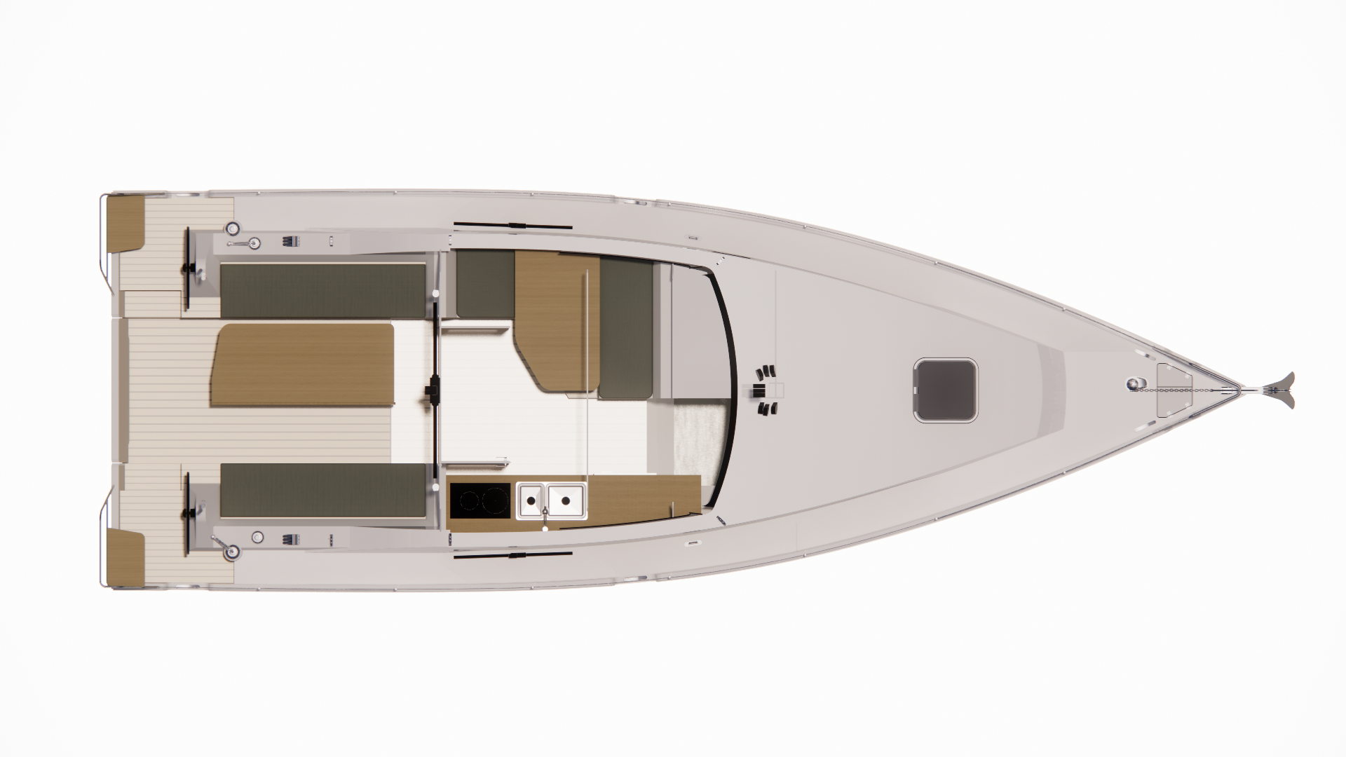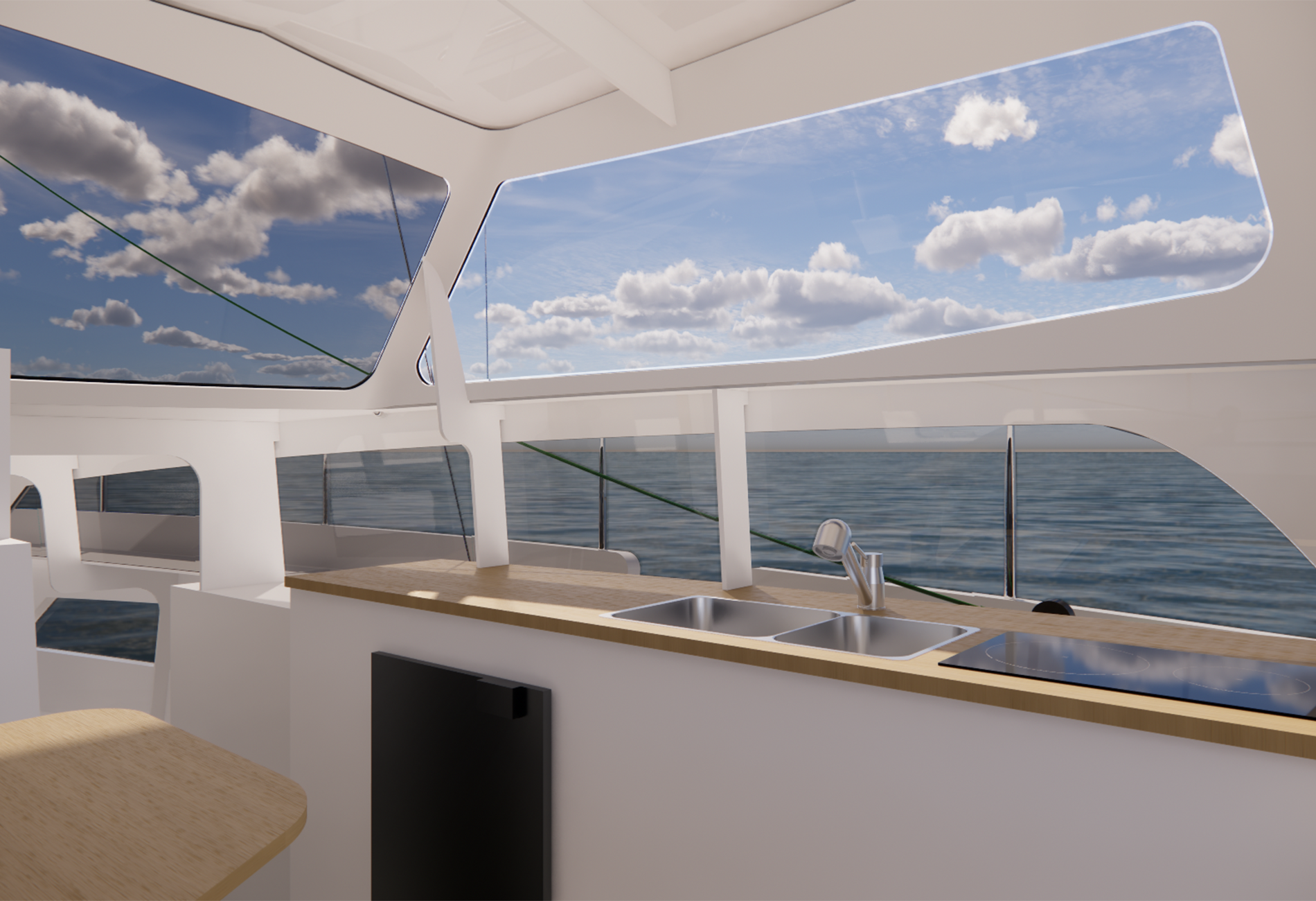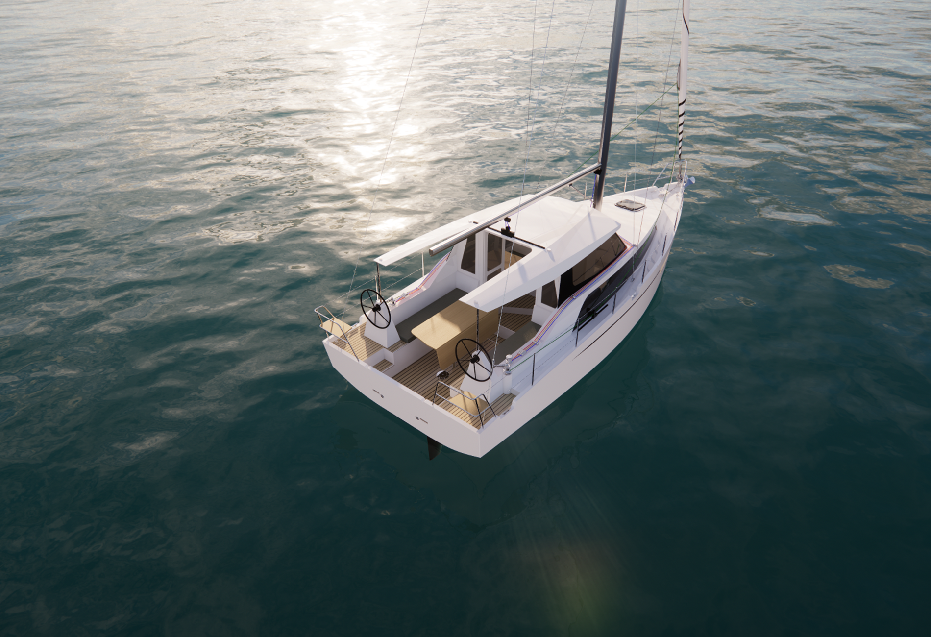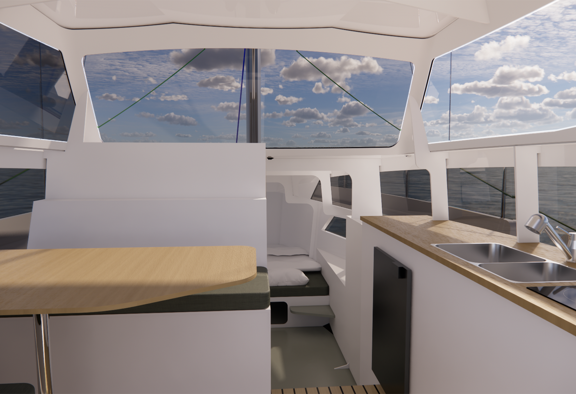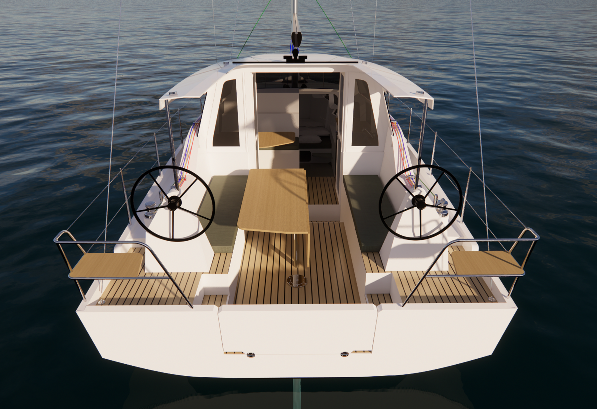 As a result, the Larelya 32′ is presented as a semi-monohull. A single small step separates the living areas, making it easier to move around and improving overall comfort. In addition, this careful ergonomics brings the experience closer to that of a multihull while retaining the sailing finesse of a monohull. Thanks to this approach, the boat clearly stands out as a unique vessel.